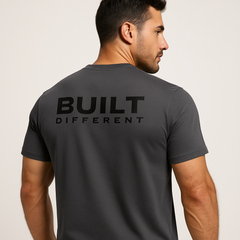When the sun’s out, excuses don’t cut it. This performance t-shirt packs UPF sun protection, cooling tech, and quick-dry moisture control — built for outdoor training, runs, and sessions that test your grit. The cotton-poly-spandex blend keeps it breathable, tough, and flexible, so it moves with you without giving in. Lightweight at 230 g/m² but strong enough to hold its shape after every wash. For the blokes who train hard no matter the heat. Built Bloody Different.