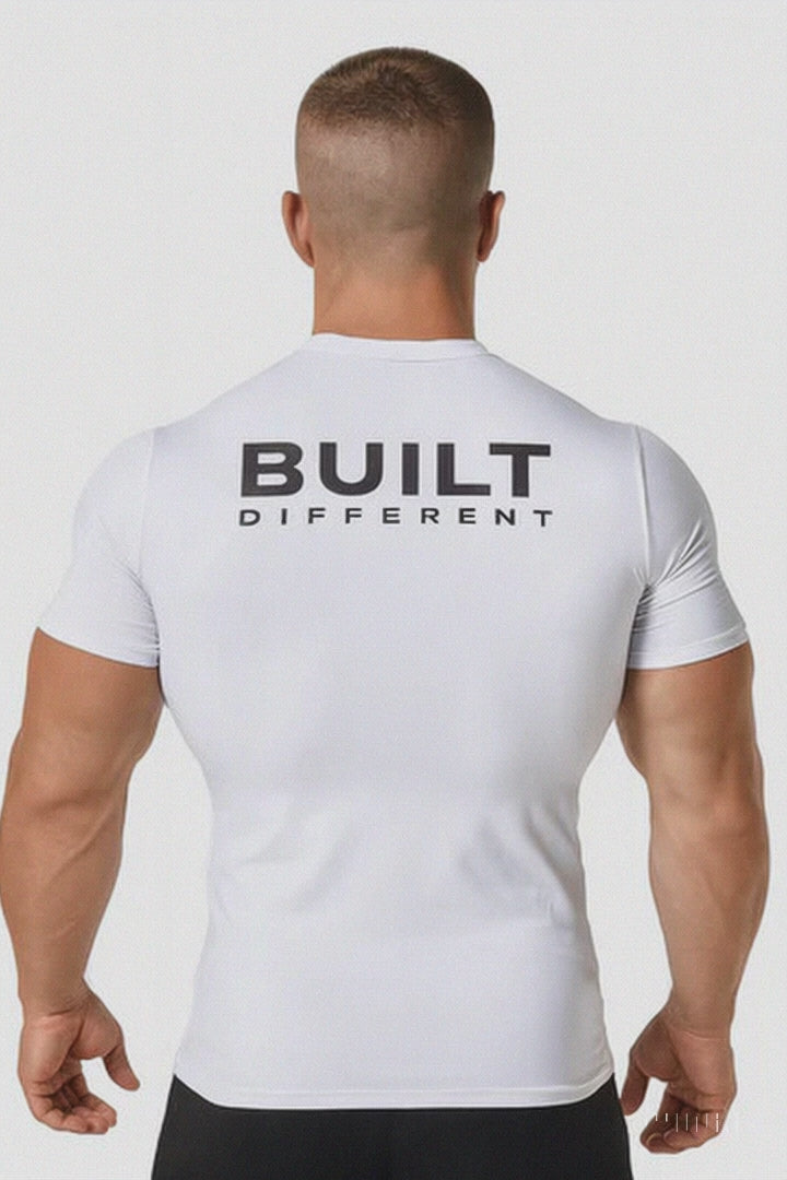 This isn’t a fashion t-shirt for prints — it’s a second-skin training top built for serious graft. Made from 200 g/m² poly-spandex, it’s lightweight, breathable, and high-stretch so it moves with you through heavy sets, sprints, or conditioning work. Raglan sleeves give you full range without restriction, and the slim fit keeps it tight, clean, and built for performance. A shirt for men who actually train, not pose. Built Bloody Different.
