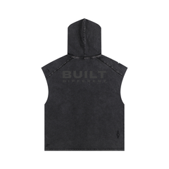 Not a fashion piece — a proper sleeveless hoodie tank built from 240 g/m² cotton with a rugged, washed finish. Boxy cut for room to move, raw-edge shoulders and hand-frayed details that make it look as hard as you train. Hooded for focus, sleeveless for freedom, built for blokes who don’t care about polished edges — only about putting the work in. A tank made tough, worn tougher. Built Bloody Different.